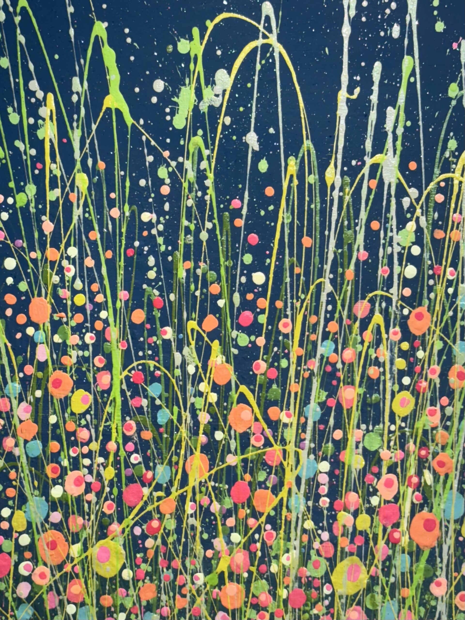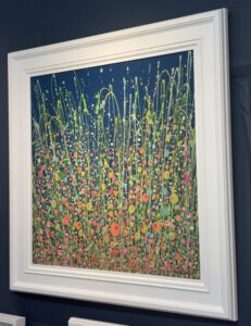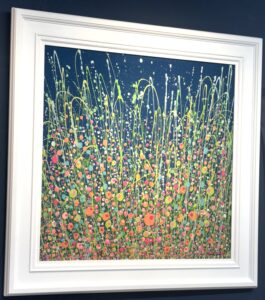 A striking meadow of rich and zesty colours with layers of fine grasses and coloured stems. Elegant sprays of soft pinks, lilac, limes, blues, with a medley of complimenting buds and blooms laying softly on gently moving blades. Cut diamond glass ensures she will offer new delights as the light changes - always so magical. 💞 Created to bring your room alive and create a smile. This beautiful original comes with a card of authenticity and has been professionally framed in a solid wood contemporary style. Ready to hang. Post Countrywide £20. Do pop me a message for further details or to reserve this beautiful girl. Instalments available X X
