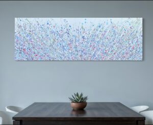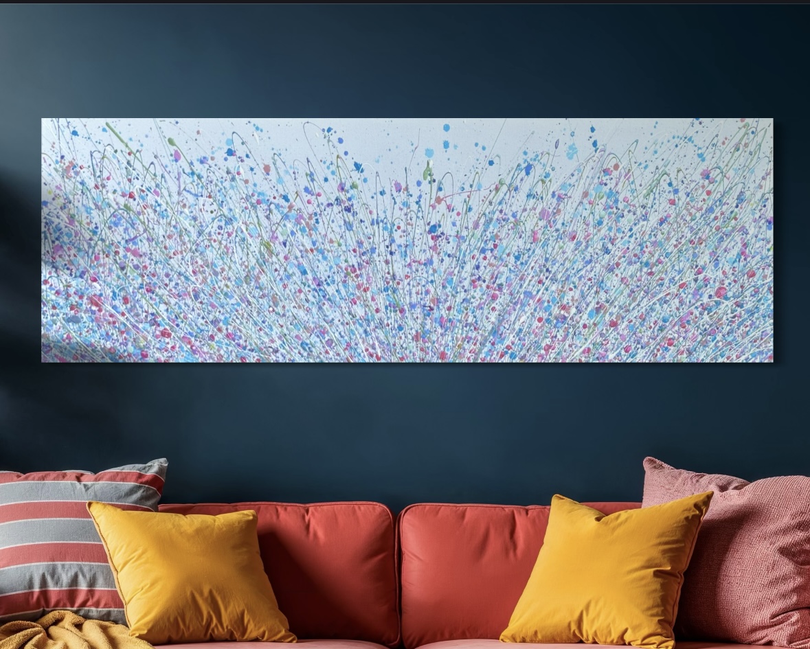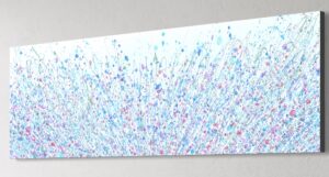 A full meadow of pastels with layers of fine grasses and coloured stems. Elegant sprays of soft pinks, lilac , blues, with a medley of complimenting buds and blooms dancing softly on gently moving blades.