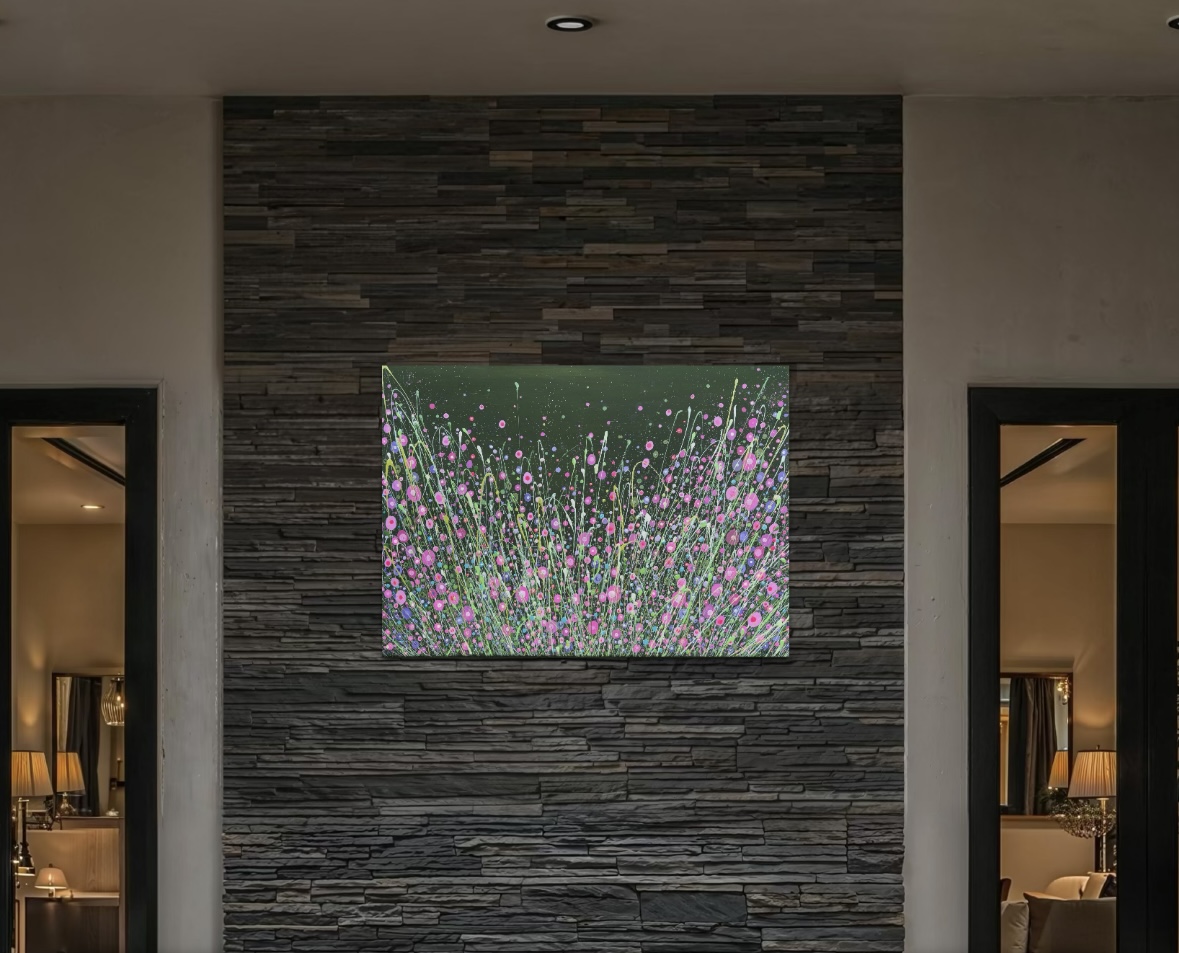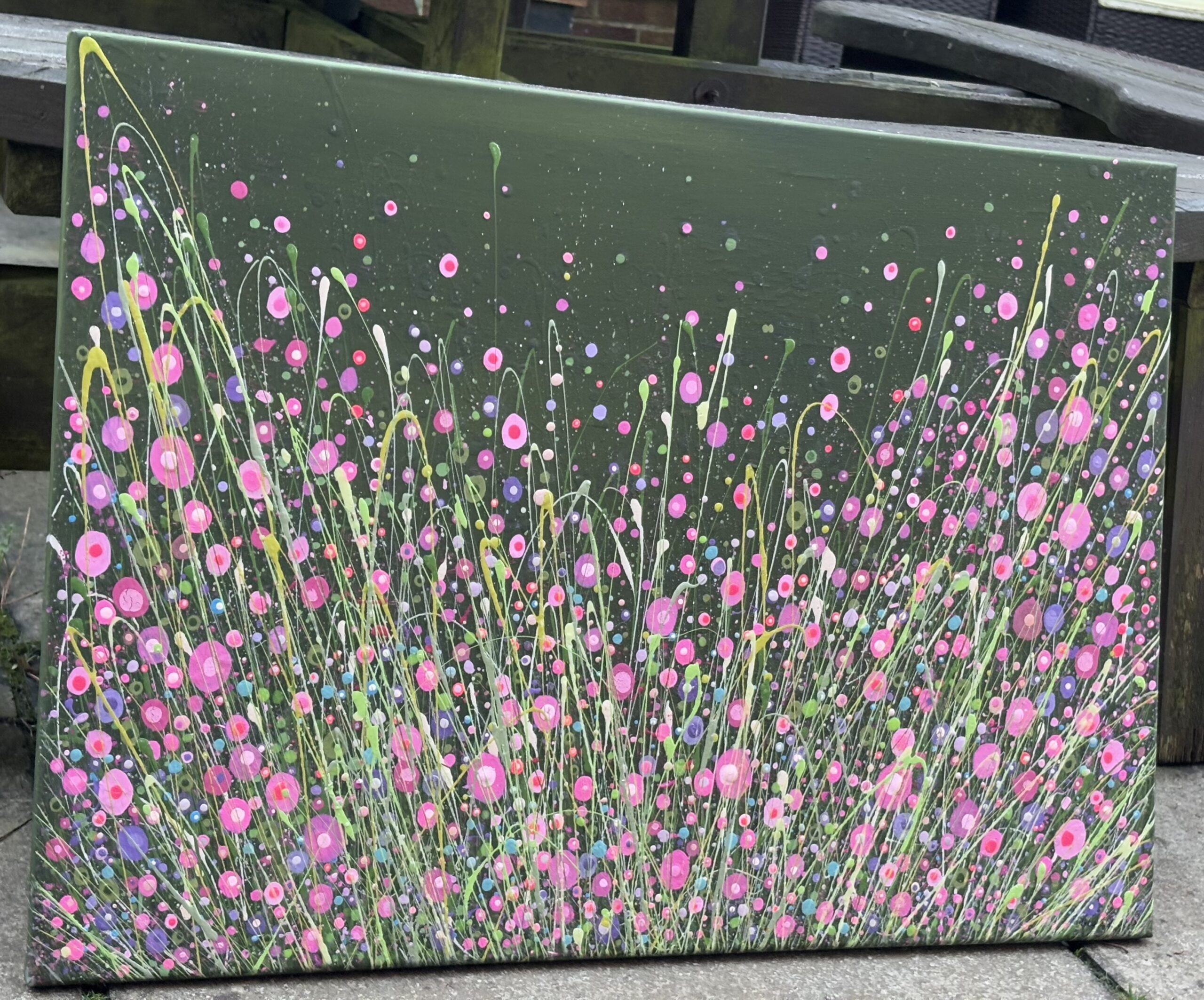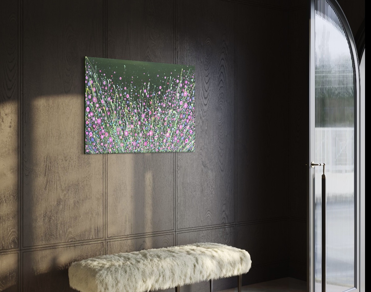 Introducing this abundant and earthy lady adorned with mixed colours, sparkle and cut diamond glass. Dancing pinks, complimentary buds will twinkle away to bring beauty and joy to your home. Always magical.
