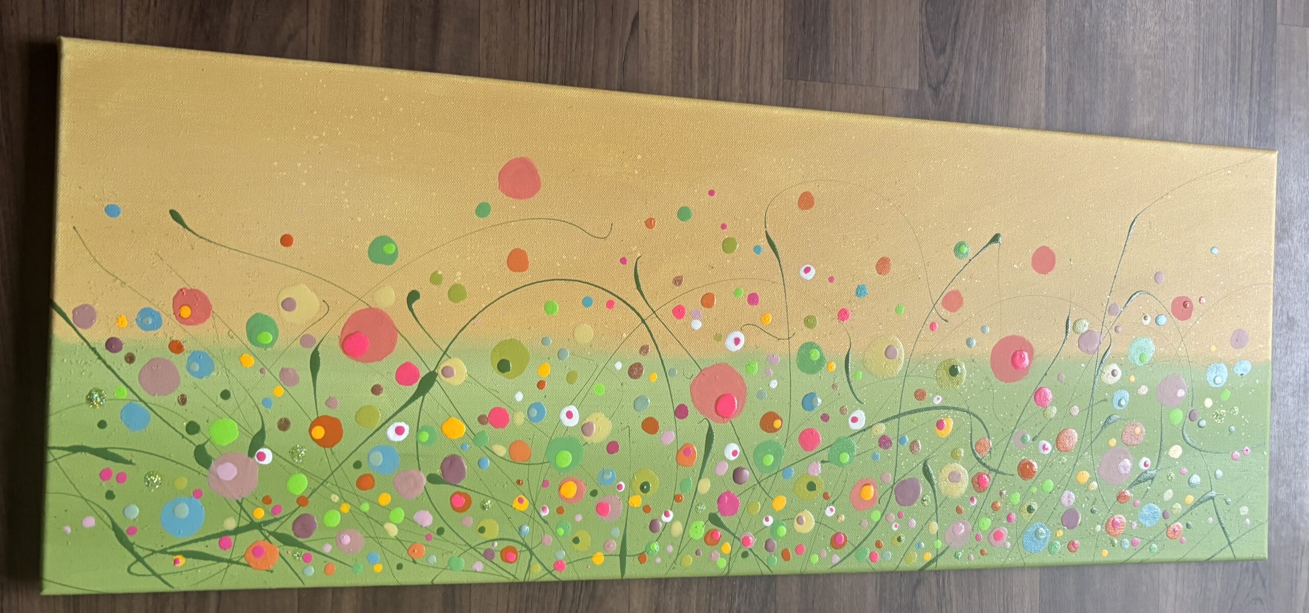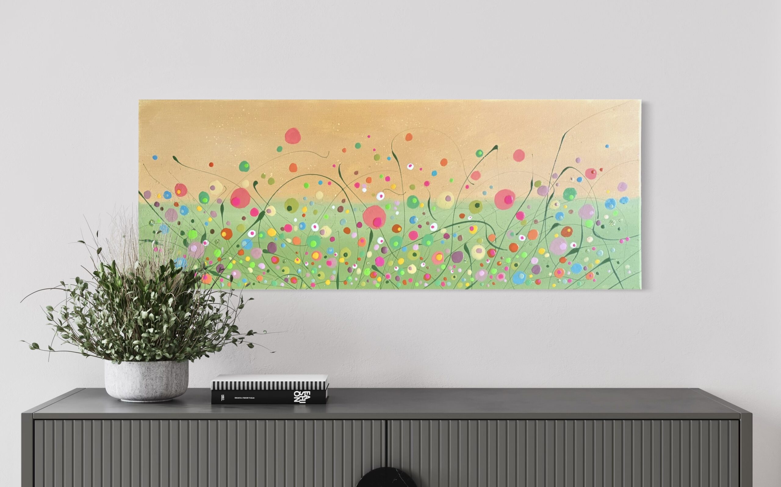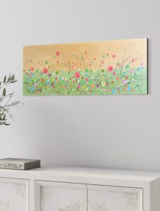 This lovely piece has just been completed, she is full of elegance with dancing grasses and stems looped amongst bold buds and blooms, what a pleasure to create . A graded and toned skyline and an eye catching colour combination to explore. With sparkle and twinkle a lovely addition for your home to make you smile and take a wonder through beautiful nature . A signed original with a card of authenticity. Post Countrywide £15 - Studio Collection. Pop me a measure for further details . Instalments available. Created with passion, love and a smile x