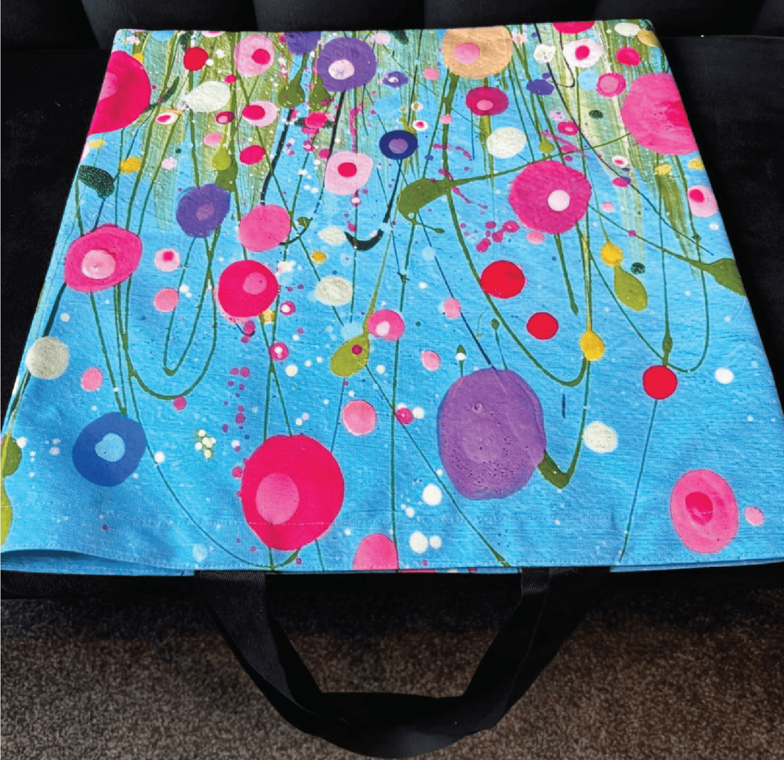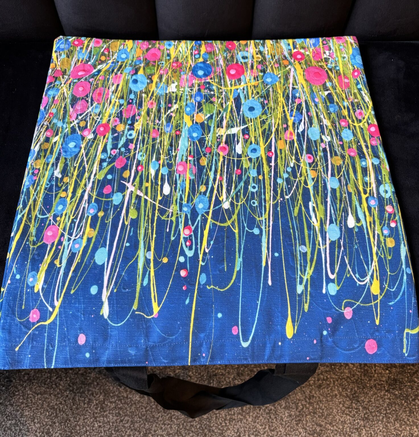 Pretty and joyful bespoke limited edition tote bag. Exclusive designs from Beverley Saunders Art . Fantastic for everyday use , also offering a practical , pretty and stylish gift solution. Something special to use and enjoy. Full double sided design . Hand finished and washable to 30 degrees. Made from tear-resistant canvas, my tote bags are robust and durable. With long and comfortable fabric handles they fit over the shoulder, and have a generous capacity too . A card of authenticity is included.Post or Collection. Pop me a message to reserve your design.With love🌸