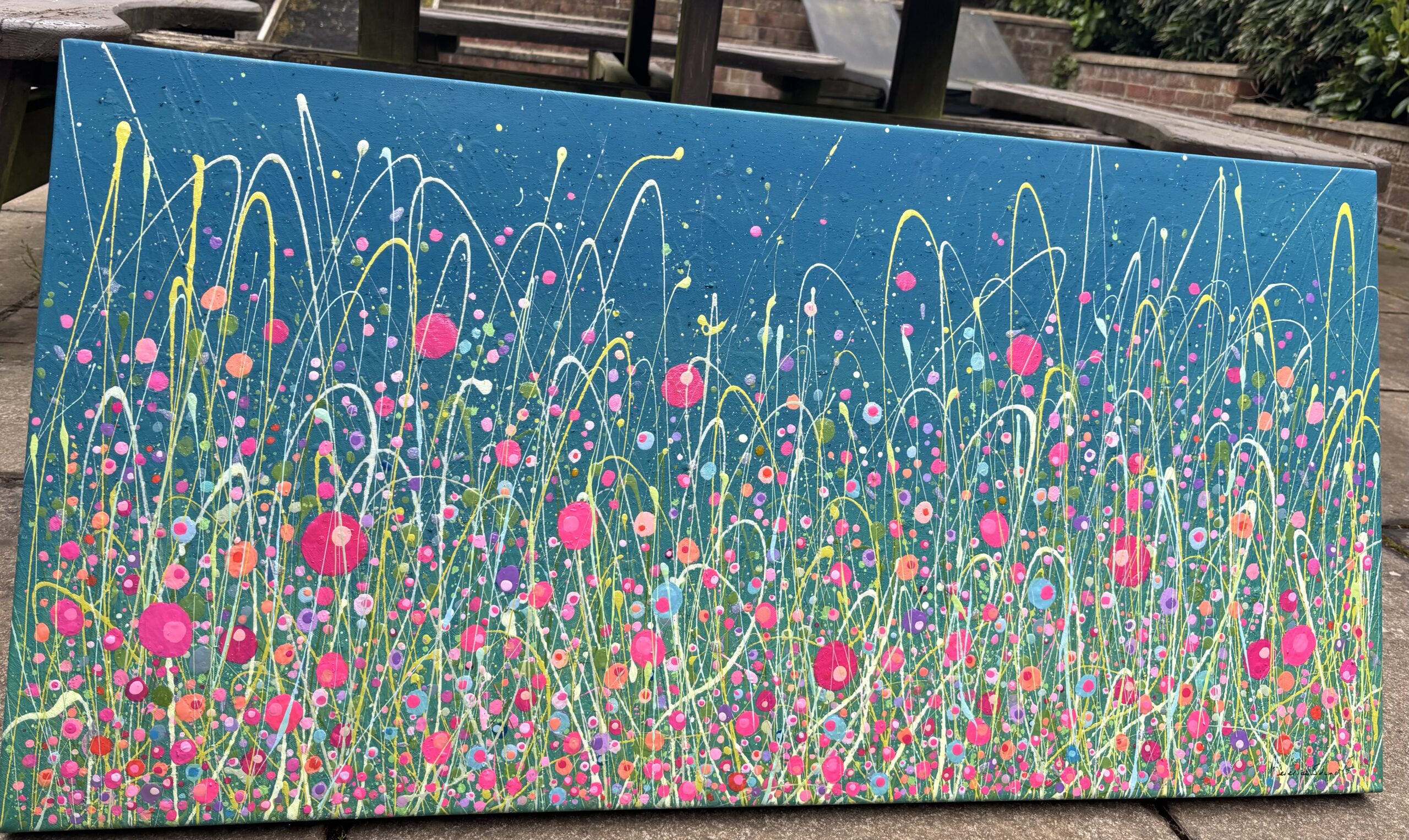 This richly toned creation is from my Bold and Beautiful Collection. She has fine and wispy colourful stems and will pop any room with her texture and large blooms and bouncing buds. Adorned with elegant sparkle and encrusted with cut diamond glass to catch your eye. The colours will change with the natural light and new delights will surprise you throughout the day and night . A gorgeous original created on a heavy thick edge canvas with certificate if authenticity. Post Countrywide. £20. Do pop me a message for further details . Xx
