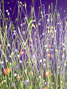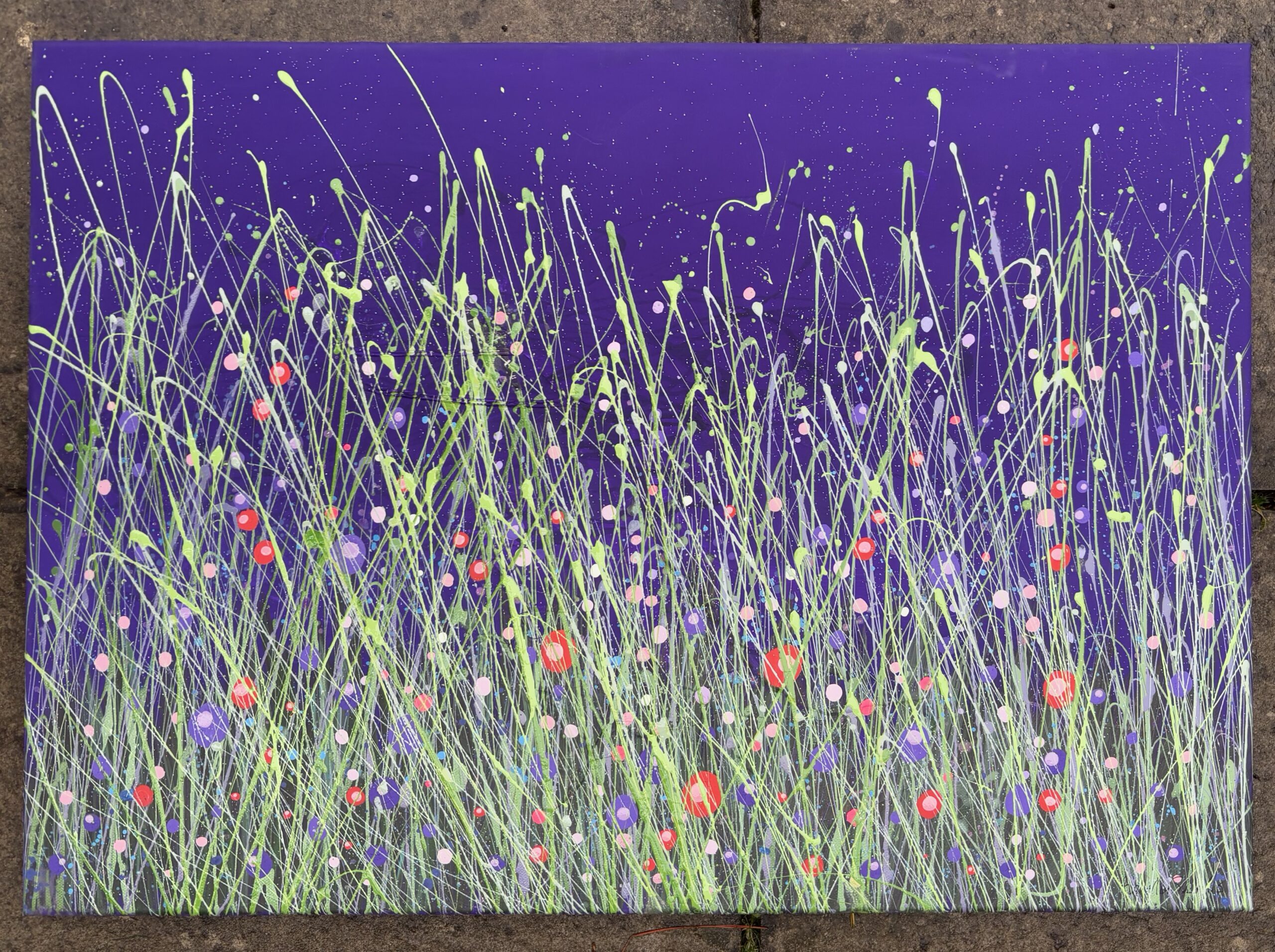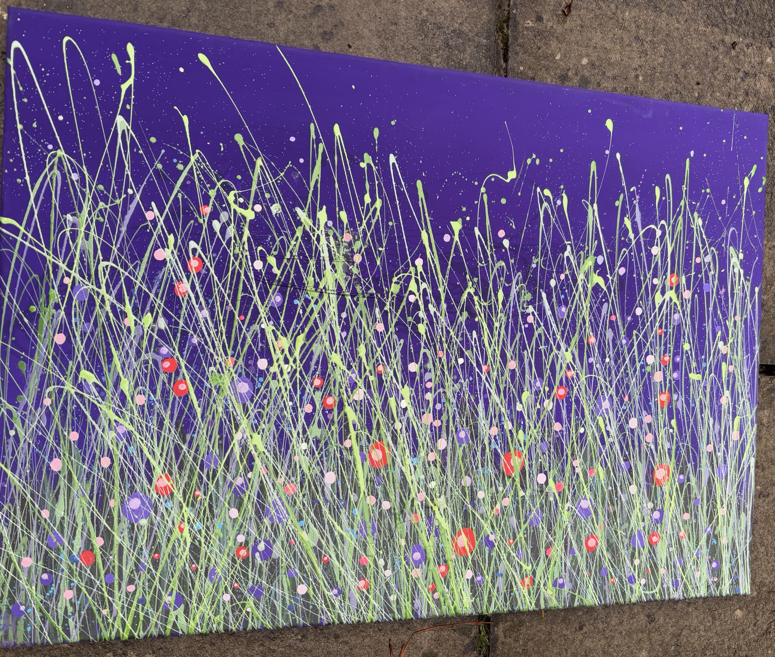 This canvas has layers and layers of colourful buds and blooms and really pops with the striking toned grass blades. This mid purple background is bursting with complimenting mixed peekaboo buds that really makes a statement. With twinkle and sparkle she will offer new delights with the changing light. Originals offer so much extra and can be so very tactile too. Post countrywide: £20 or studio collection. Created with love and a passion for colour and nature x . Do pop me an enquiry message below for further details or to reserve this illuminating piece. X